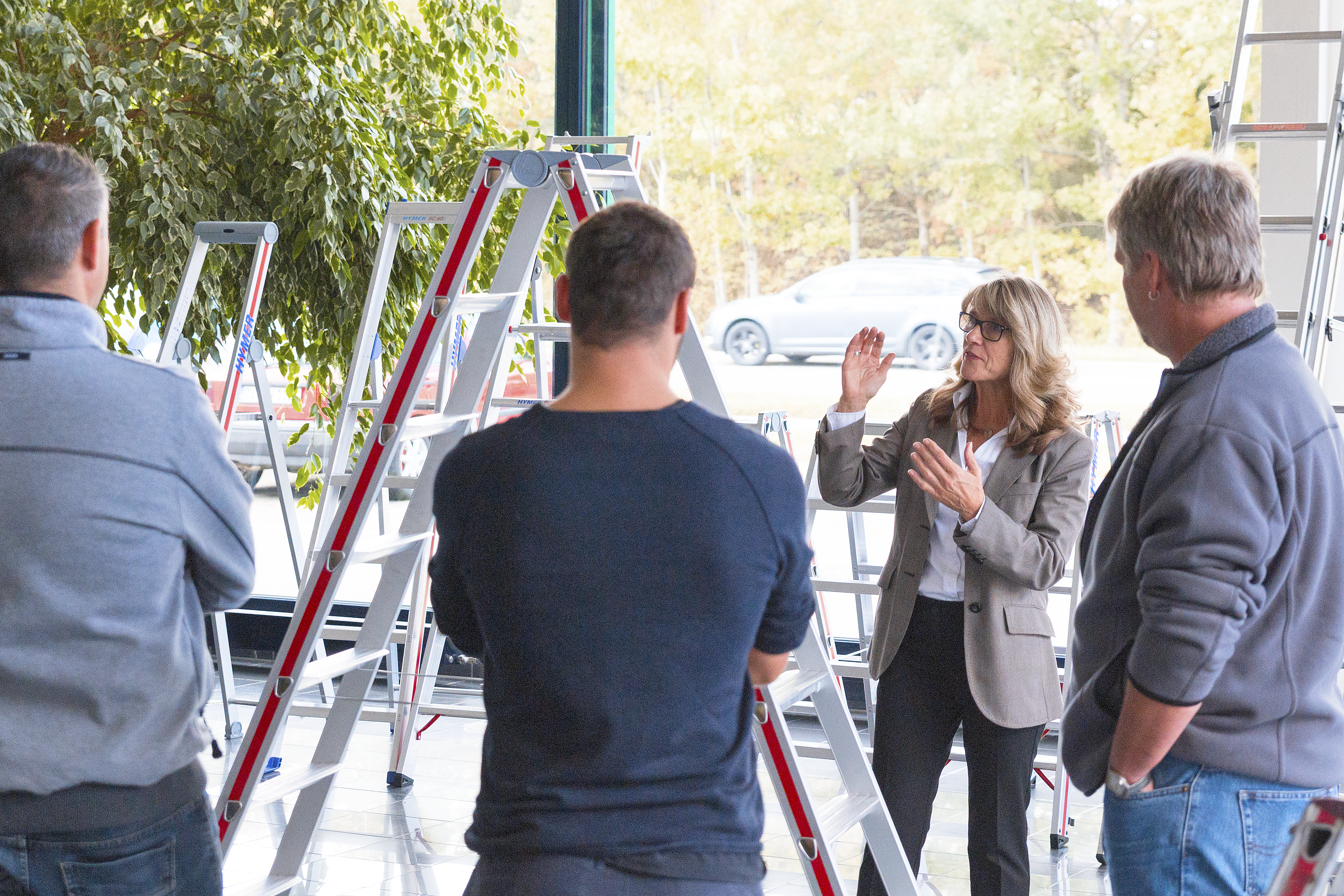 Praktisch, komfortabel und normkonform - HYMER-Teleskopleitern mit Klappausleger
